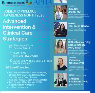 Intensive two-day summit training healthcare professionals, emergency responders, and advocates in evidence-based identification and response protocols for interpersonal violence. Critical training fills gaps in professional education, providing practical skills for recognizing, documenting, and responding to violence cases effectively.